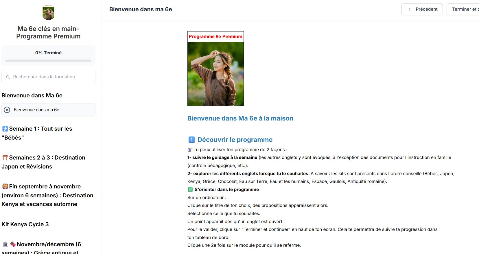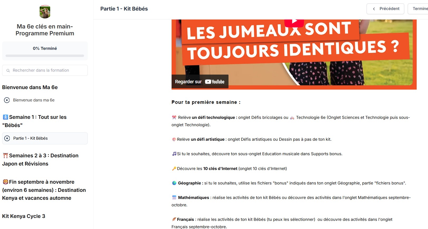 Vous accédez à plusieurs modules, vos kits sont classés dans votre programme.