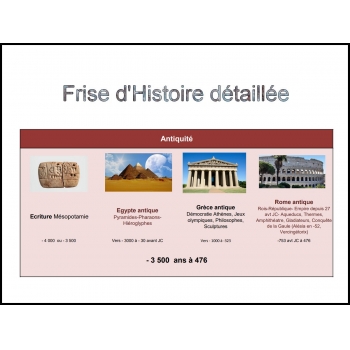 La mettre à l'échelle était difficile à respecter compte-tenu du format choisi et des informations ajoutées (par exemple la Préhistoire). Cependant, au sein même des différentes époques, respect dans une certaine mesure, de respecter une échelle historique.