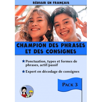 - Pour les 8 à 15 ans ou plus qui souhaitent maitriser ponctuation, phrases, passif et consignes et/ou qui ont des difficultés avec ces notions. (plusieurs niveaux de difficulté inclus)