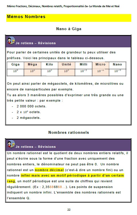 Extrait en mathématiques :