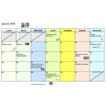 Calendrier janvier-février 2026
